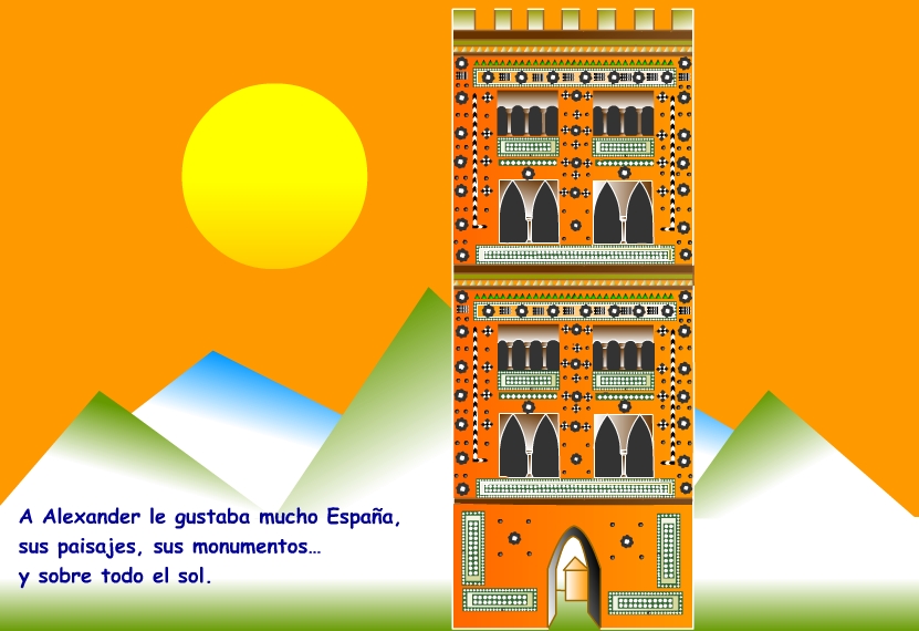Cuento: El alma del almendro. Lámina 11. A Alexander le gusta España y Teruel.