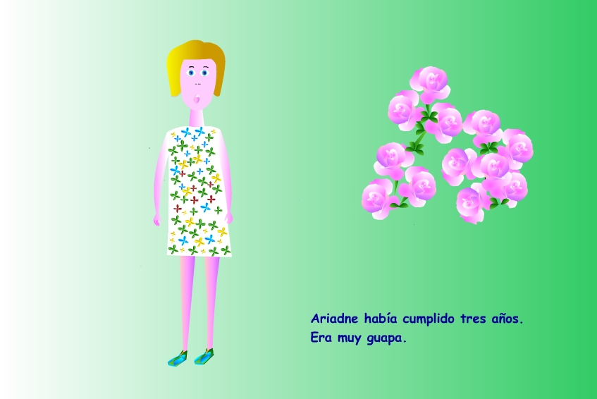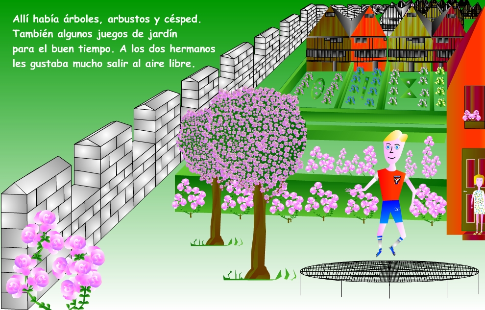 Cuento infantil: El alma del almendro. Lámina 6. En el jardín de Alexander y Ariadne.