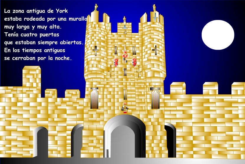 Cuento infantil: El alma del almendro. Lámina 4. La muralla de la ciudad de York.