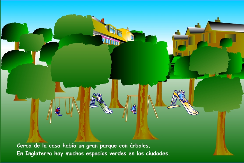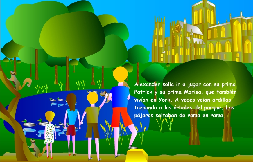 Cuento infantil: El alma del almendro. Lámina 7. En el parque de York.