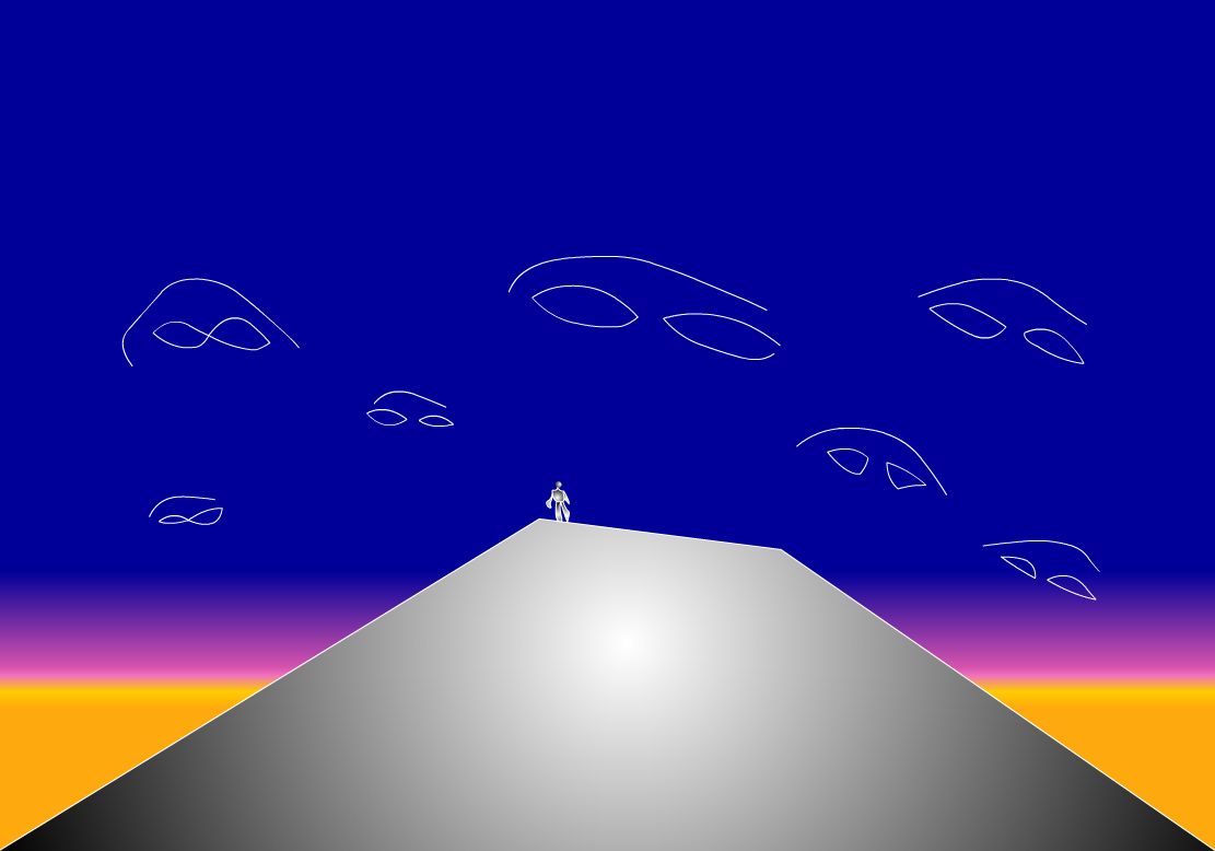 Pero, nadie me contestó. Solamente tuve la sensación de que La Tierra se había hecho pequeña. A partir de este momento siempre estaría en su interior como un prisionero de su Inmensa Conciencia. Y me sentí en cierto modo aterrado. Tampoco era esa la palabra, pero como narrador de cuentos y fantasías, me siento atraído por palabras grandielocuentes para que mi historia pareczca más fantástica y un poquito terrorífica. Continué caminando, y desgranando el nanosegundo de visión que me había invadido. Y todo era lógico. Yo que llevaba más de treinta años buscando la Conciencia Universal, ahora me veía apresado por ella. Y les contesté a aquellos ojos y caras que adivinaba más alla del viento.