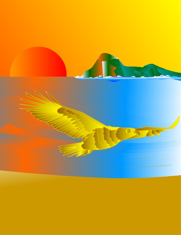La tarde, augusta y lenta, se desangraba a lo lejos, y un sol, rojo