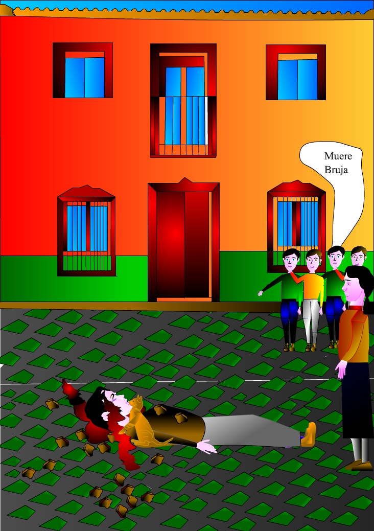 de gallináceas, gritando, “¡A matar a la bruja piruja!”,“¡A