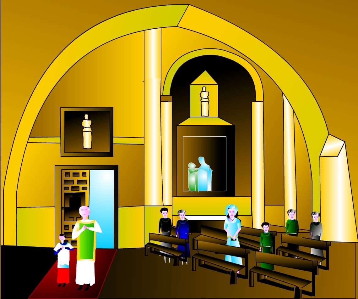 la izquierda, en los primeros bancos, cerca de una columna, había